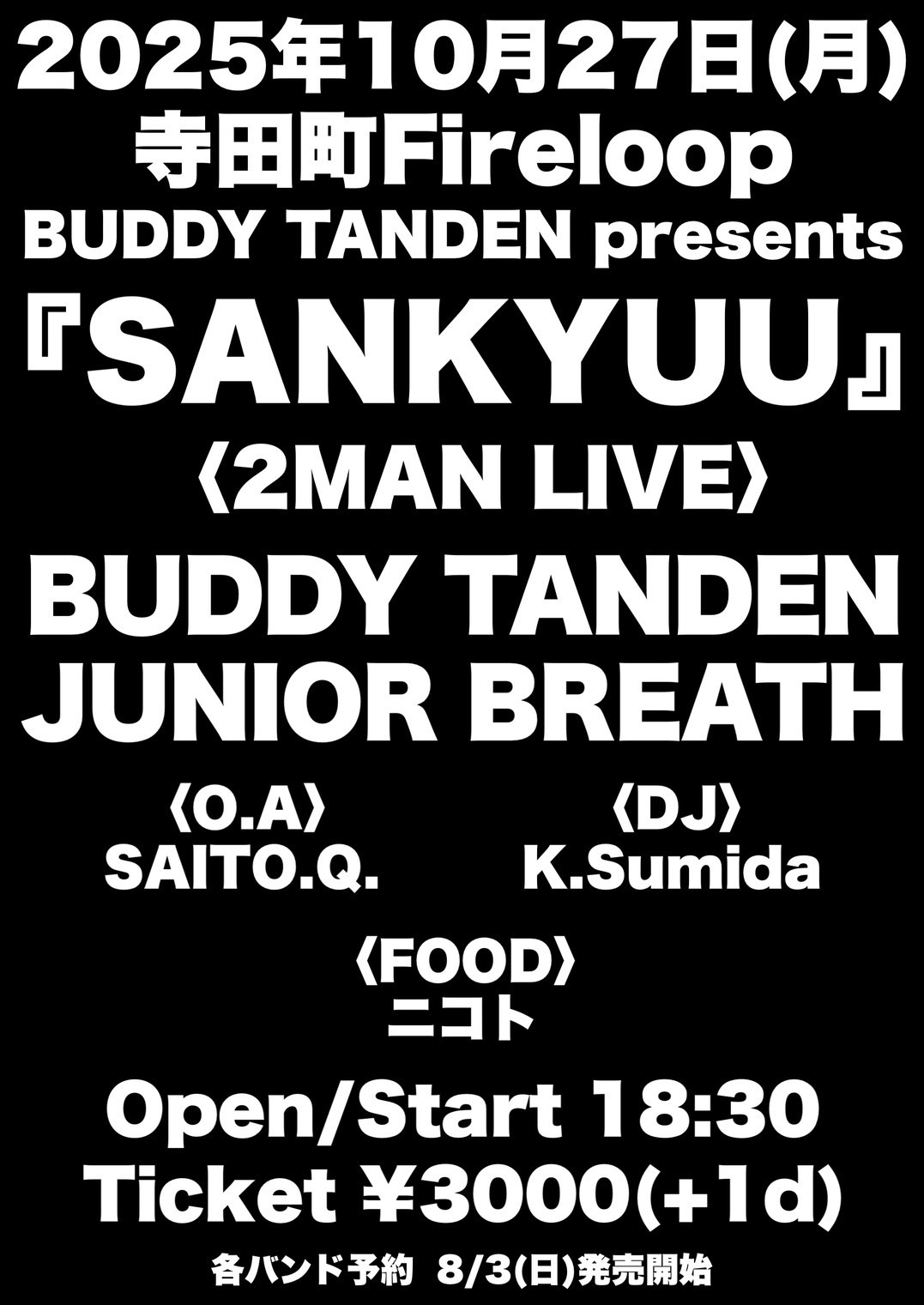 JUNIOR BREATHとBUDDY TANDENには、以前ジャケットデザインで関わらせてもらってまして、こういうタイミングでDJオファーいただきとても嬉しいです。O.AのSAITO.Q.とはイベントで何度かご一緒させていただいてますが、あの浮遊感あるトラックはぜひライブで見ていただきたいです。